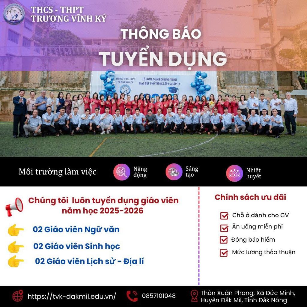 Tuyển dụng giáo viên – Gia nhập ngôi trường tâm huyết Bạn không chỉ đang tìm một nơi để dạy – mà còn đang tìm một nơi để thuộc về. Tại Trương Vĩnh Ký, chúng tôi tin rằng mỗi thầy cô giáo đều là người gieo hạt. Và để học sinh nảy mầm, người gieo […]